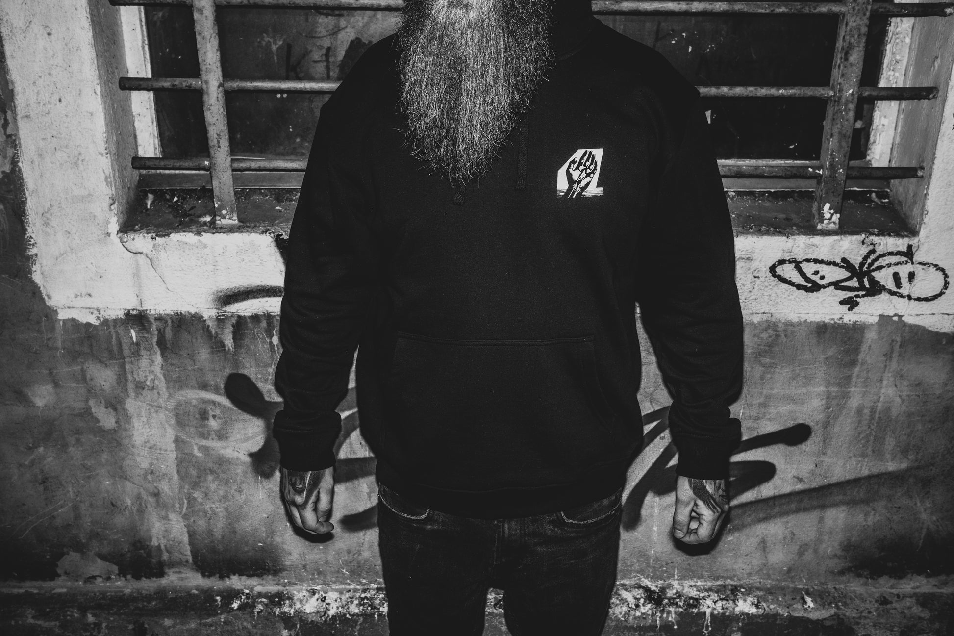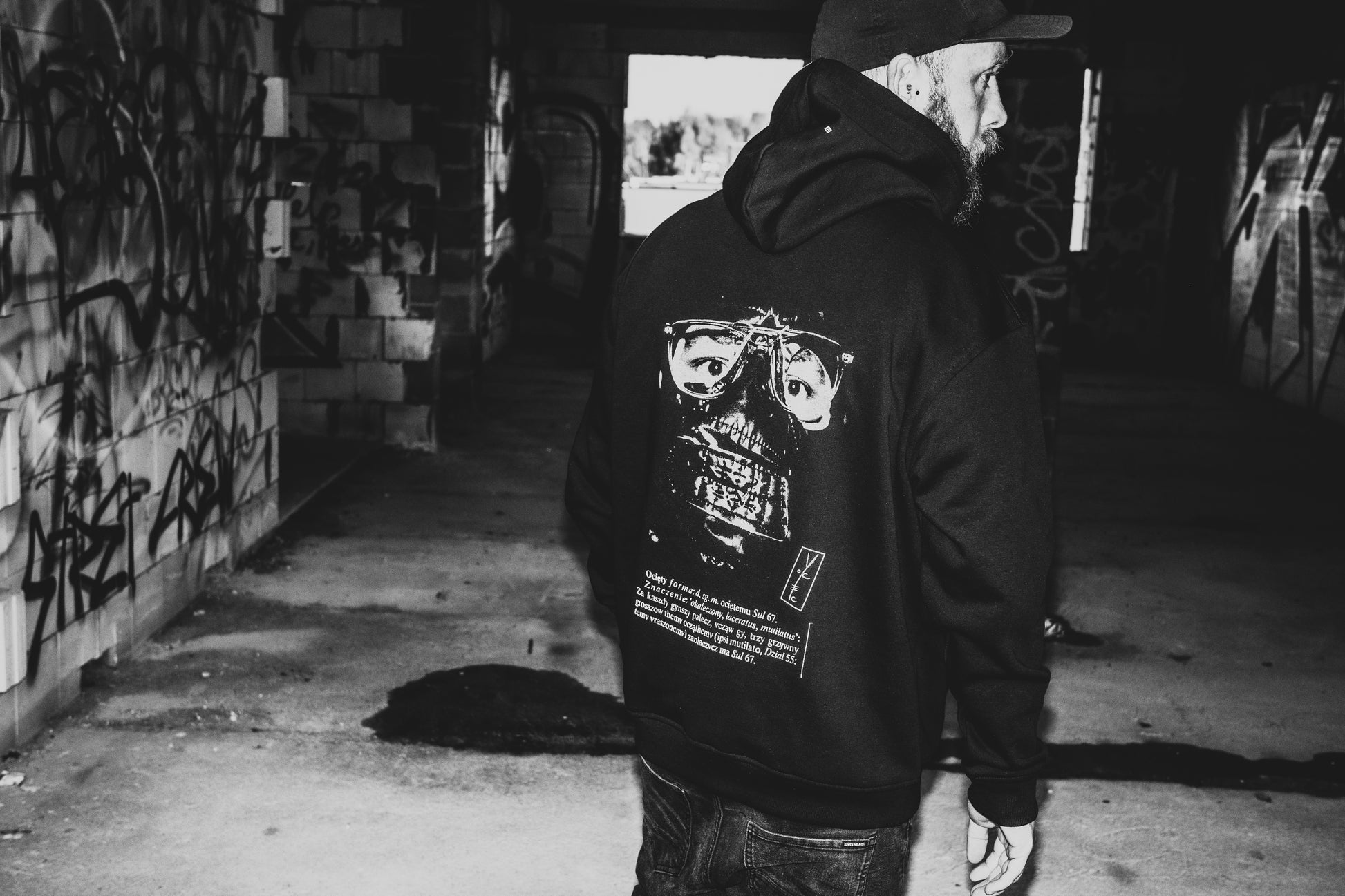 Limitowana bluza oparta na autorskim zdjęciu Ociętego w masce, połączonym z etymologią staropolskiego słowa ocięty — oznaczającego „okaleczony, zraniony, naznaczony”.